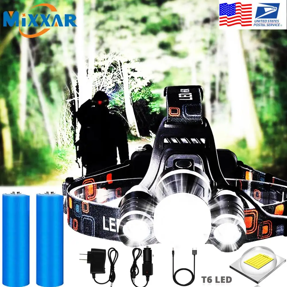 Special Offer EZK20 livraison directe lampe frontale Rechargeable 3 T6 R5 LED casque de protection phare batterie voiture chargeur mural pour le Camping Discount 20% Today!