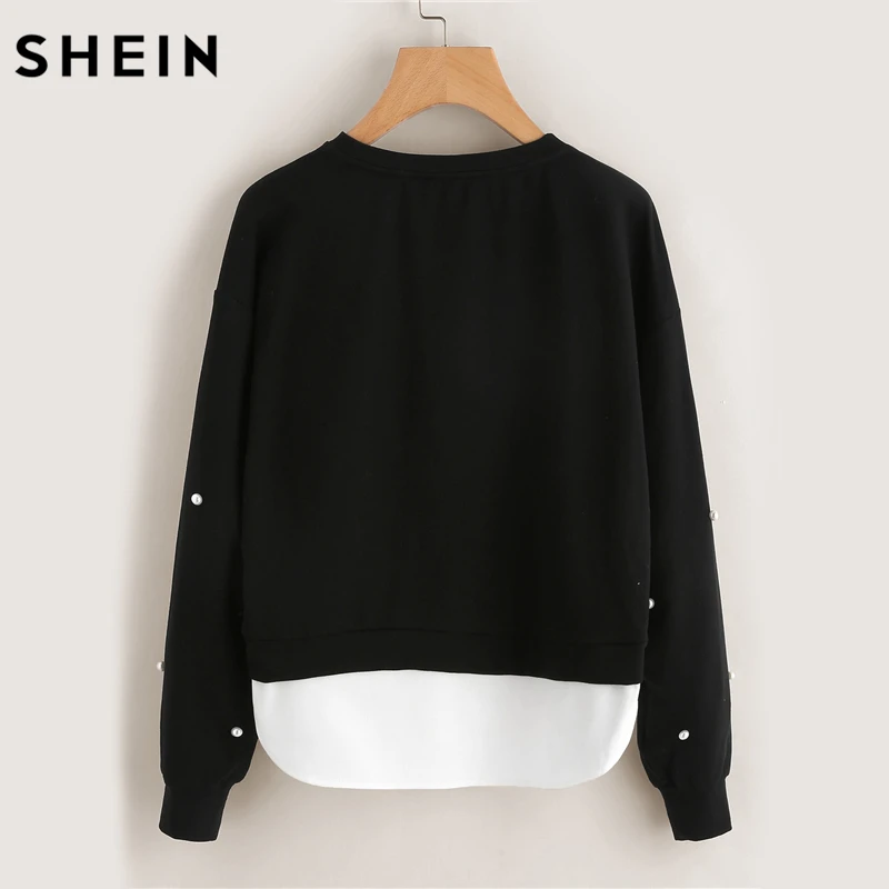 . (45% Off) Acheter Sweat SHEIN femme perles perles 2 en 1 sweat automne femmes sweat noir manches longues pulls élégants Pas Cher Prix.