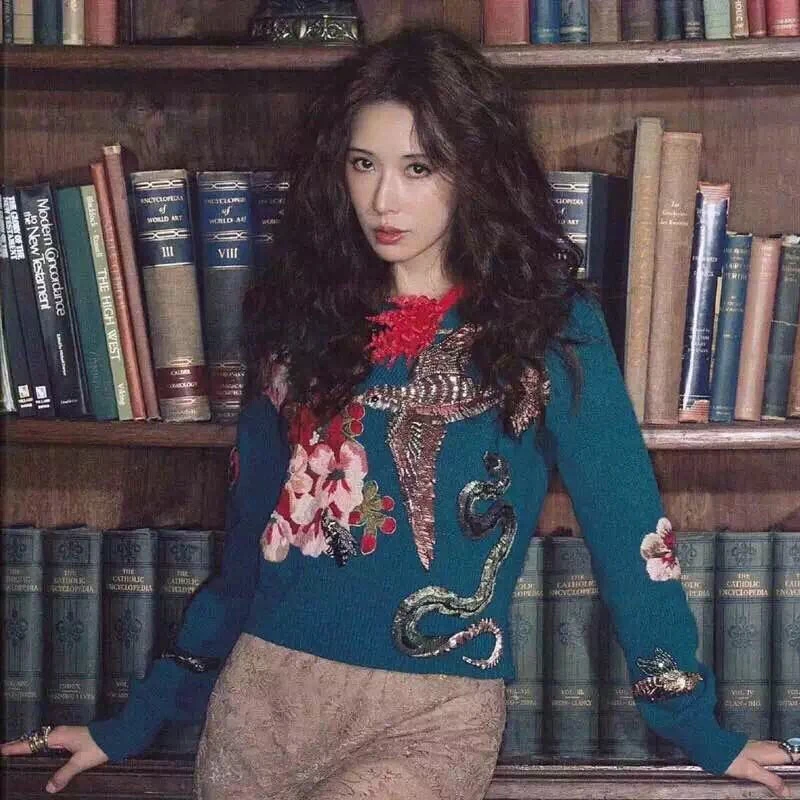 Product Name: 2019 hiver piste de noël femmes pulls chandails de luxe bleu perles oiseau broderie Vintage dames tricoté pull vêtements