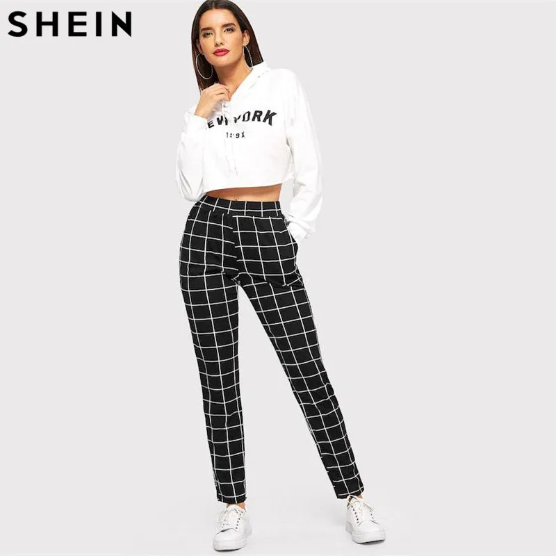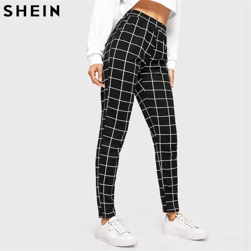 Special Offer SHEIN noir Plaid mi taille Skinny carotte pantalon automne femmes décontracté Slim Fit Vertical femmes crayon Streetwear pantalon Discount 40% Today!
