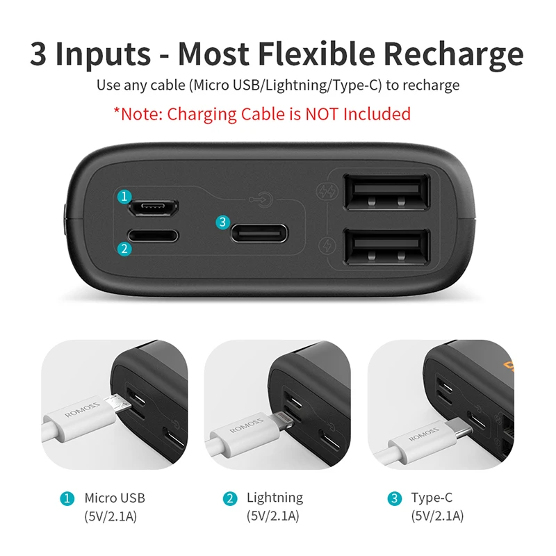 Product Name: ROMOSS Ares 20 20000mAh batterie externe USB Type chargeur Portable batterie externe 5V 2.1A avec affichage de LED pour téléphones tablette