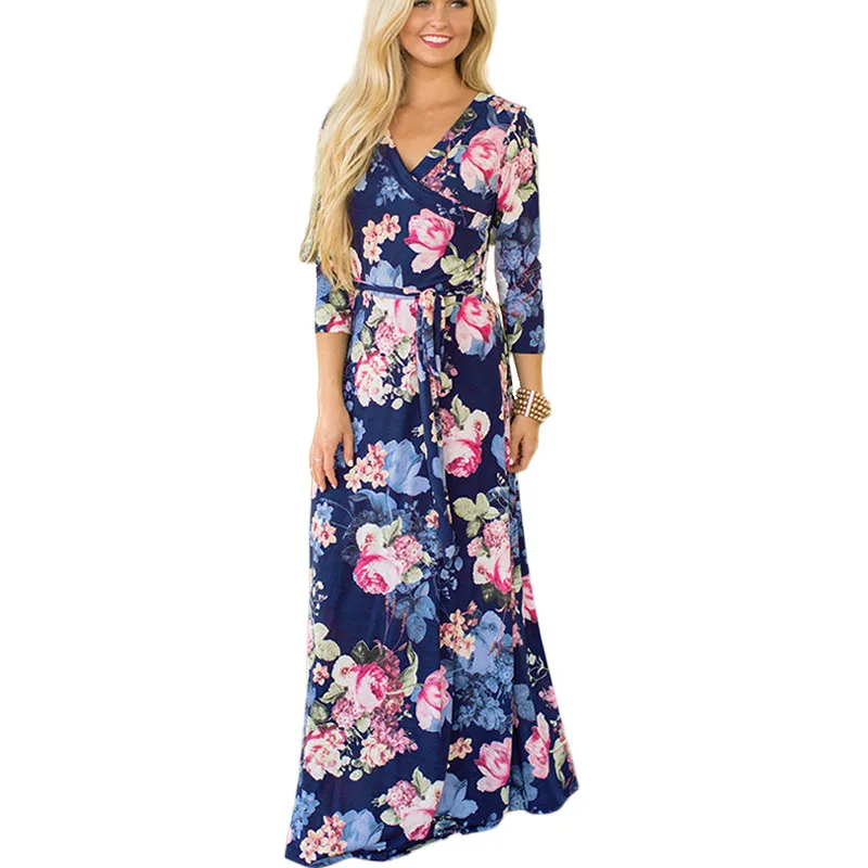 Special Offer Femmes été imprimé fleuri Maxi robe Boho Style longue robe de plage soirée longue bande moulante robe grande taille Vestidos Discount 50% Today!